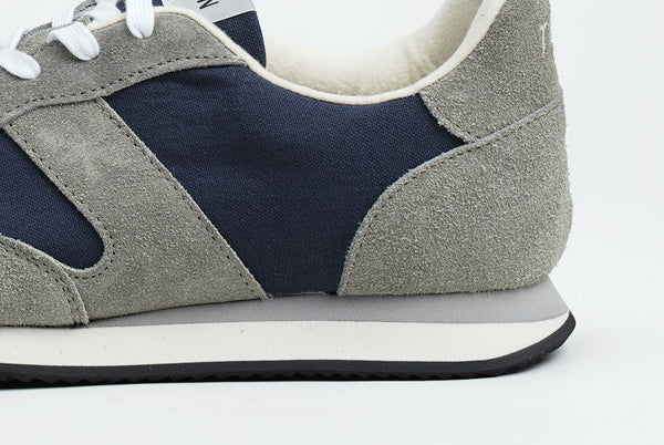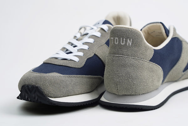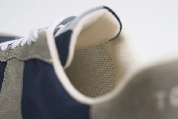 デザインは競技用シューズを手本としたモデル「Seven」から派生しました。ワイドに張り出したソールはしっかりと地面を捉えるためのディティールです。素朴な素材使いでどこかノスタルジックな印象です。